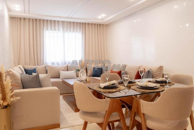Appartement neuf et paisible, idéal pour familles ou amis. Profitez d’un salon lumineux avec espace repas, 2 chambres confortables, 2 salles de bain modernes et une cuisine équipée dernier cri. Parking public à proximité, immeuble avec ascenseur. Quartier calme avec cafés, commerces et transports, à 10 min de la plage Merqala et 15 min du centre-ville de Tanger.