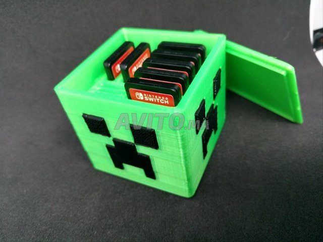 Découvrez notre boîte de rangement Creeper inspirée de Minecraft, parfaite pour vos cartouches de jeux Nintendo Switch 🎮💚