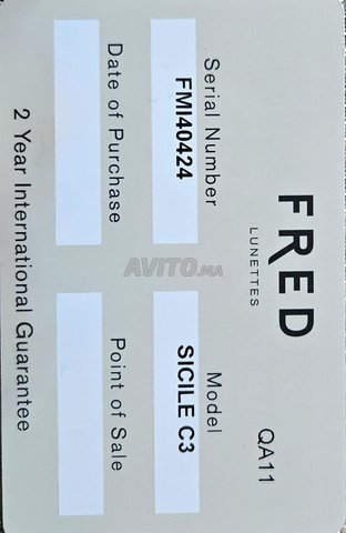 Lunettes fred Sicile prix magasin 10 mille dirhams avec carte officielle fred modèle très rare