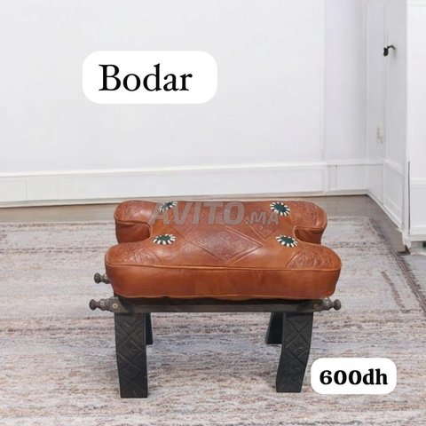 Chef-d'œuvre marocain en cuir et bois sculpté