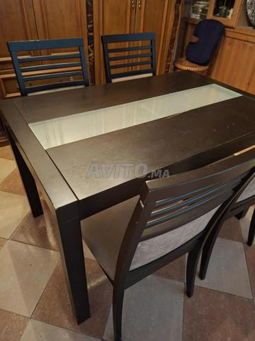 Cause déménagement. A vendre table avec ses 4 chaises en très non état . Couleur venge. dimension L 1,20 m et largeur 0,70 m.