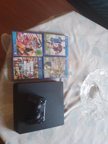 ps4 slim en très bon état 500 mo une mannete et 4 cd: gta5 . fifa 15 . fifa 17 . one piece burning blood