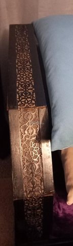 Je vends un salon marocain composé de bois travaillé à la façon marocaine avec 1 accoudoir, de 4 grands coussins et de deux matelas qui mesurent chacun 200x80 cm.