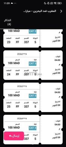 TICKETS VIP CAT 1 CAT 2 match maroc vs bahrein
