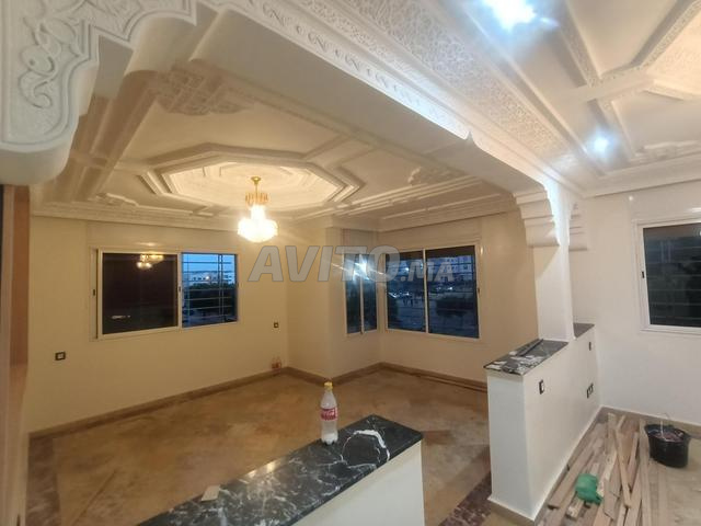 Belle appartement en location à temara riad oulad mtaa dans un secteur calme et sécurisée, il se compose de deux chambres et doubles salons bien fini et bien ensoleillé 2 façades, 1 er étage,