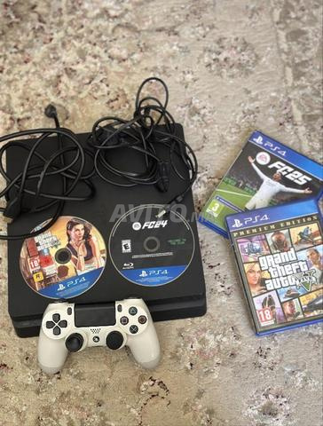 PS4 SLIM AVEC MANETTES ORIGINAL PLUS AVEC TOUS LE PACK DALIMENTATION AVEC CD GTA V ET FC 24