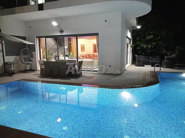 La villa jouit d'un fort ensoleillement, principalement les parties jardin et la piscine. Elle est dotée de deux cuisines totalement équipées, en sous-sol et au rez-de-chaussée. Les salons sont couverts de marbre blanc et l'étage de parquet massif 18 mm. D'autres détails sont disponibles, notamment chauffes eau solaires 2X300 litres en terrasse, chauffage central au GO dans tous les espaces et les chambres, climatisation centralisée dans les salons et en split dans les suites.