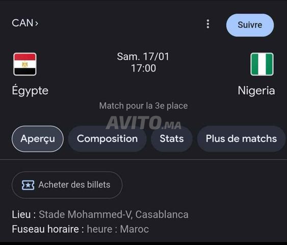 - Billet CAN Nigeria Egypte petite finale