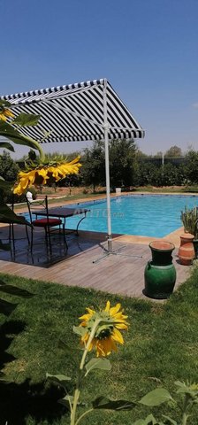 Villa à louer à la journée pour une famille près de Marrakech. Elle comprend une chambre, deux salons avec salle de bain, une salle de bain pour invités, un garage avec cuisine, une grande piscine et un espace vert. À 15 minutes du centre-ville. Pour plus d'informations, veuillez nous contacter. L'hébergement est limité à 8 personnes. Merci