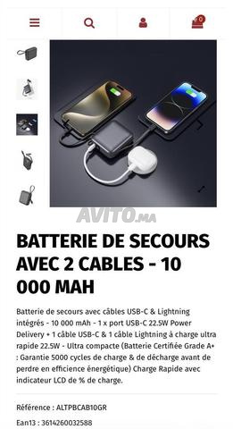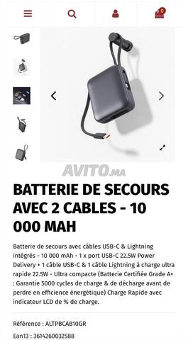 Batterie de secours avec câbles USB-C & Lightning intégrés - 10 000 mAh - 1 x port USB-C 22.5W Power Delivery 1 câble USB-C & 1 câble Lightning à charge ultra rapide 22.5W - Ultra compacte (Batterie Certifiée Grade A plus : Garantie 5000 cycles de charge & de décharge avant de perdre en efficience énergétique) Charge Rapide avec indicateur LCD de % de charge.