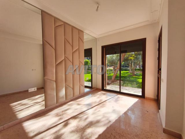 Pour location longue durée jolie appartement vide à Rez de jardin de 2 chambres avec salon et la cuisine avec deux salle de bain avec la terrasse,avec la piscine et ascenseur et parking dans une résidence sécurisé et très calme à route de l’ourika.