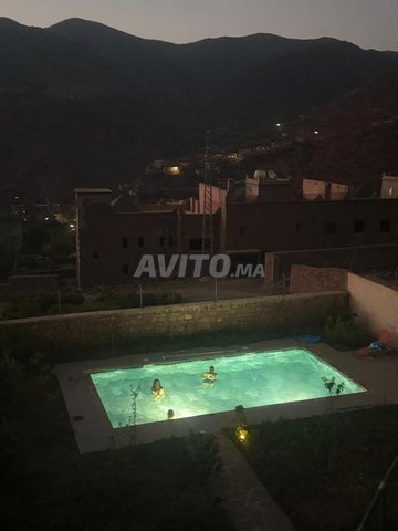 Bonjour, je vends une villa tout équipée, avec grande piscine à 35 km de Marrakech au cœur des montagnes d’Ourika. Trois chambres, deux salles de bain et cuisine équipée, ouverte sur un grand salon. Terrain de 500m2. Melkia adlia avec plan et permis de construction. Paysage à couper le souffle.