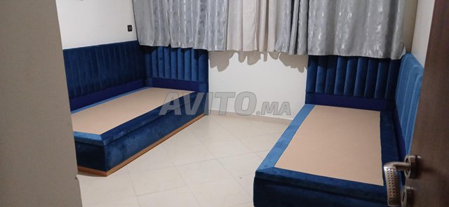 🛏️ Deux lits banquettes d’angle avec rangement intégré – 💙 Pratiques et élégants