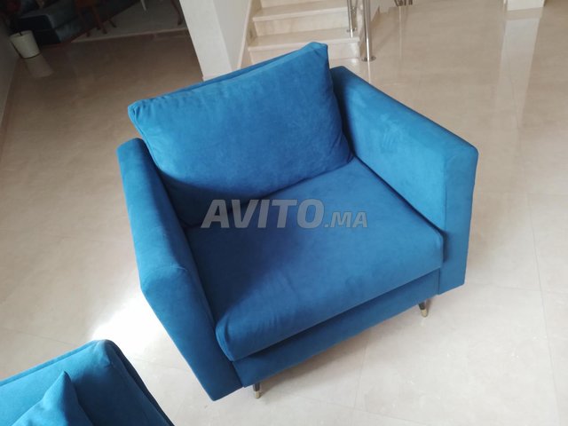 Salon en tissu bleu royal, haute gamme, ( tissu et finition), se compose de deux unités séparés :
