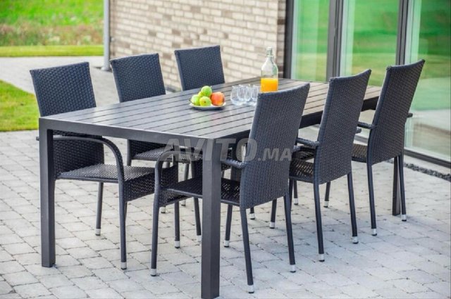 - Pack table aluminum noir avec 6 chaises