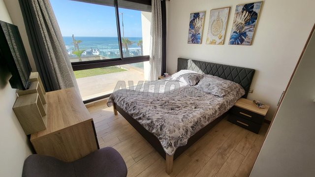 Bienvenue dans notre Appartement meublé de 150 m front Mer avec 2 chambres ,1 Salon , 2 Jardin , 1 Terasse et 2 salles de bains, idéalement situé pour des vacances relaxantes. Vous serez immédiatement séduit par notre magnifique terrasse offrant une vue imprenable sur la mer, où vous pourrez savourer votre café du matin ou vous détendre en admirant les couchers de soleil. Les deux chambres à coucher offrent un espace de repos confortable pour vous et vos invités. Les deux salles de bains garantissent un maximum de commodité et d intimité pour tous les occupants. Notre cuisine entièrement équipée vous permettra de préparer de délicieux repas et de profiter de moments conviviaux autour de la table à manger. L espace salon est l endroit idéal pour se détendre après une journée bien remplie, avec une télévision pour vous divertir La résidence propose également une piscine où vous pourrez vous rafraîchir et vous détendre à tout moment de la journée. L appartement est directement a cote de la plage pour passer des journées de farniente au soleil et à des baignades rafraîchissant.