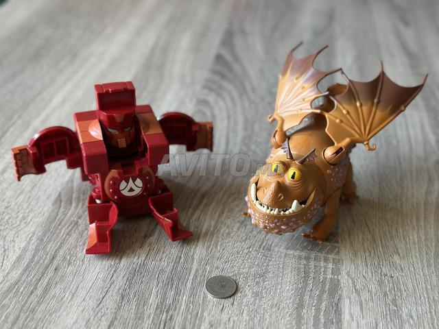 Action figures dyal dragon ou bakugan rouge, ba9i n9yin w zwiiinin.
