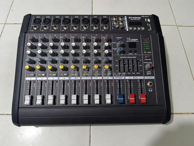 Je mets en vente une table de mixage de type Phonic PMX 802D-USB, fonctionnant parfaitement à 100% et testée, idéale pour les mosquées, les mariages, les réunions et l'usage domestique.