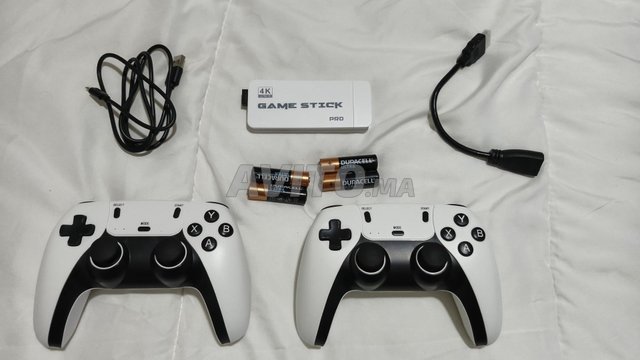 Game stick 4k Pro (Ultra HD) 128 Go contient plus de 50000 jeux ( le bon vieux temp) plus 2 manettes avec ses accessoires câble HDMI et le câble USB ,neuve pas beaucoup utilisée pas de casse jamais tombée , marche impeccable. (Avec 4 pilles duracel Ultra offerte),
