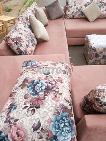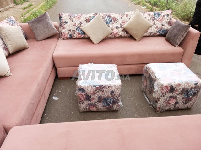Pour départ a l'étranger je mis en vente mon Salon presque neuf a 5000 DH fait sur mesure avec du bois rouge et bonne qualité de tissu et accessoires 5 fauteuil 3 place longeur 2 m 10 et largeur 70 CM avec coin et tabourets