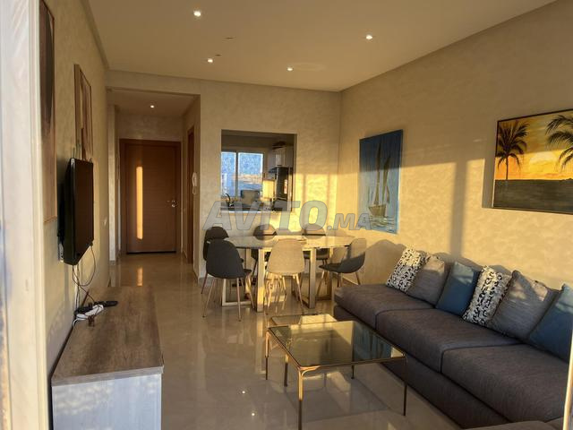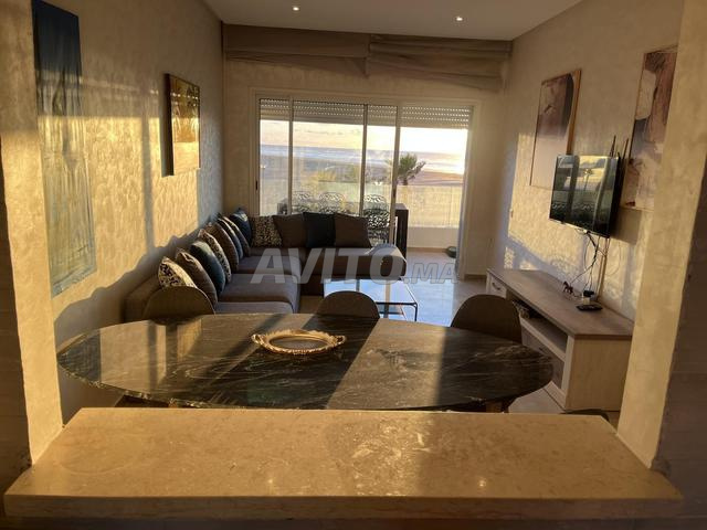 Appt de 80 m2 en face de la mer, piscine et couché du soleil, vue dégagée sur mer à 180 degrés comprenant un salon, deux chambres, deux salles de bains dont une suite parentale, dans une résidence fermée sécurisée à 40 km de Casablanca, accès direct à la plage, cuisine équipée, télévision smart, wifi, fibre, piscine pour grands et petits, parking. Uniquement pour familles et couples mariés, max 6 pers, 600 dh / nuit, minimum 3 nuitées, vidéo disponible à la demande.