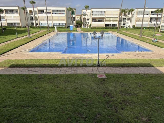 Location appartement, 100 m², VUE PISCINE à la résidence balnéaire OLA BLANCA à 30 minutes de CASABLANCA deux chambres à coucher, deux salles de bain, deux toilettes, un grand salon avec salle à manger.TV Parabole une cuisine indépendante entièrement équipée , un grand balcon qui contient un séjour et une salle à manger l’appartement en face de la piscine, plusieurs terrains multisports, animation jour et soir ,parc de jeux pour enfants un restaurant, un café, une supérette, femmes de ménage disponibles sur place accès direct à une immense plage
