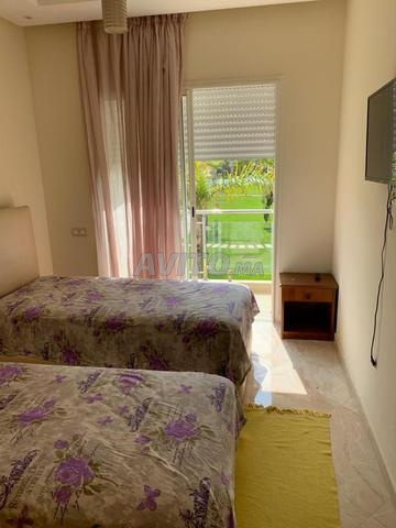 C'est un appartement avec deux chambres, deux salons, une terrasse, une cuisine équipée, et trois piscines à l'intérieur de la résidence, résidence sécurisée, avec un syndic veillant, et parking, route privée pour la plage, des terrains de jeux pour les enfants, terrain de foot, terrain de basket, vue sur piscine, terrasse, deux salles de bains, confortable pour une famille et efficace pour les enfants, résidence surveiller par les cameras, appartement au ler etage, tres spacieuse et calme, 1000dh par nuit et propriétaire sur place et disponible, bien pour les personnes âge qui ne peuvent pas sortir