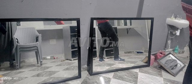 2 grands miroirs avec cadre noir et 2 sans cadre