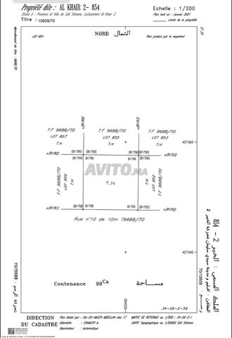 Je mets en vente un terrain bien situé et ensoleillé à Hay Nassim, pour habitation R 2, superficie 99m2.