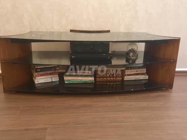 Meuble TV de bonne qualité et à prix très raisonnable en bois et verre dépoli noir très chic et moderne.