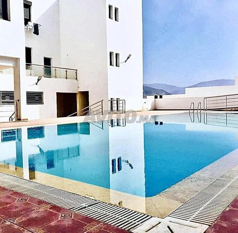 Appartement bien meublé dans une résidence avec piscine à côté de la plage, loin de 10 minutes d'Agadir et 5 minutes de Taghazout.