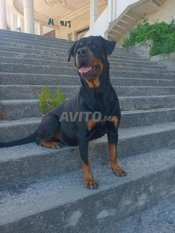 Chienne Rottweiler pure race âgée de 3 ans, sociable, elle joue avec les enfants, aime jouer, calme, ne fait pas de bruit, bien dressée, assise, couchée, au rappel, lâche, donne la patte et autre chose, elle respecte son maître. Dressage parfait.