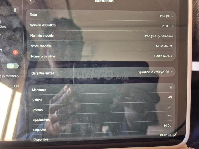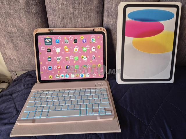 A vendre ipad 10th generation officiel toujours sous garantie état irréprochable avec sa boite originale stylet dessin et clavier RGB pochette et incassable. Etat ipad et batterie 100%