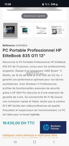 je met en vente un pc portable marque hp Elitebook 835 G11 AMD ET ZEN 5 13.3 pouce 16go