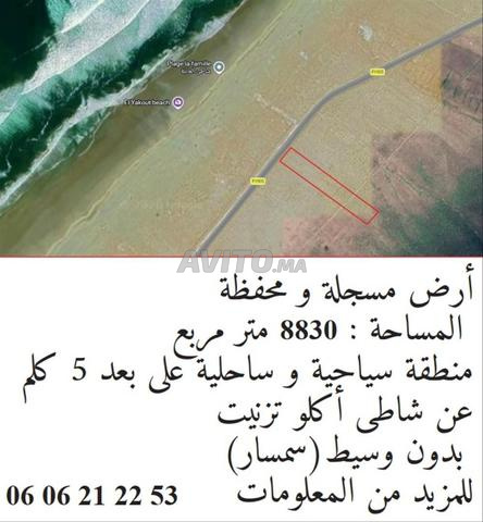 À vendre, une parcelle de terrain titrée d'une superficie de 8830 m², située dans un emplacement stratégique à proximité de la zone touristique d'Aglou, à environ 5 kilomètres de la plage.
