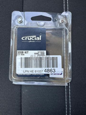 Ram 16GB DDR5 - 5200 crucial pour PC portable