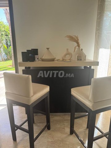 - Meuble comptoir en bois et 2 chaises hautes