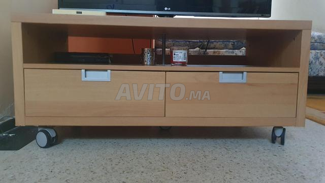 Vends meuble TV moderne en bois clair mdf sur roulettes :