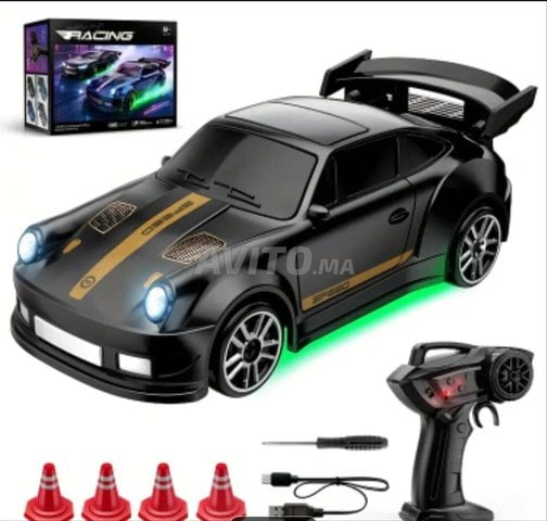 Voiture de course RC à l'échelle 1:64 avec charge USB et lumières LED - Accélération à haute vitesse, contrôle à l'échelle complète, charge Type-C, design de voiture de sport élégant pour le bureau et la chambre, voiture de course à distance, design ludique, corps en plastique durable
