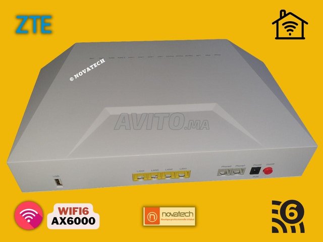 Je mets en vente un Routeur wifi fibre optique « ZTE ZXHN F6640 » compatible avec Maroc telecom. Le F6640 est un équipement Dual Mode (norme Wifi 6 2.4Ghz/5Ghz) vitesse 5800Mbps.