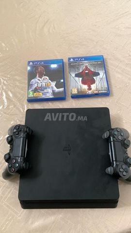 Je mets en vente une PS4 slim en bon état avec le jeu PES 2018 et deux manettes.
