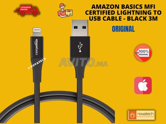 أمازون باسيكس - كابل شاحن USB-A إلى Lightning ABS (10 أقدام) 3M، معتمد من MFi لجهاز Apple iPhone و iPad و iPod ******************** السلام عليكم، أعرض للبيع كابل شاحن USB-A إلى Lightning ABS (10 أق...