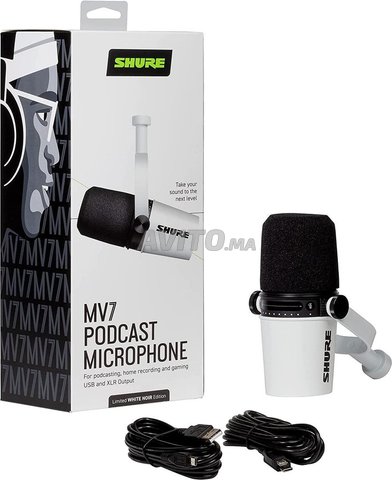 SHURE Mv7 USB/XLR ميكروفون ديناميكي للبث الصوتي والتسجيل والبث المباشر والألعاب، ومخرج وسماعة رأس، وتقنية عزل الصوت، معتمد من Teamspeak، أبيض، edis، منتجات جديدة، يتم تسليمها في عبواتها الأصلية وتغطيه...
