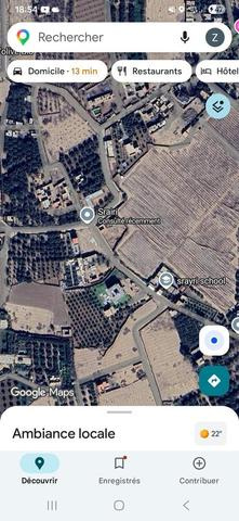 À vendre : Superbe terrain de 5 000 m² situé dans le secteur très calme de Sidi Abdallah Ghiat. Le terrain dispose d'un acte adoulaire (Melkia) en règle, avec une maison ancienne en pisé de 180 m² dûm...