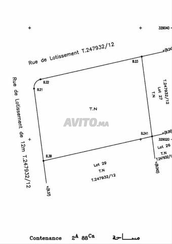 À vendre : terrain de 288 m² situé dans le quartier prisé de Sidi Hajjaj Oued Hassar, à Médiouna. Ce bien dispose de 2 façades, offrant de nombreuses possibilités d'aménagement. Prix : 1 238 400 Dhs. ...