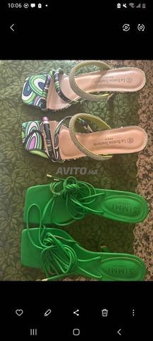 Bonjour je met en vente 2 paires de sandales chic pour vos soirées ou sorties à strass taille 40 les vertes lacets taille 38 si vous souhaitez prendre 1 paire 450dhs plus de renseignements contactez m...